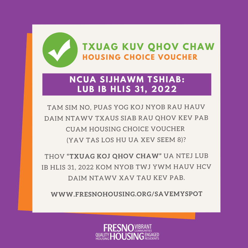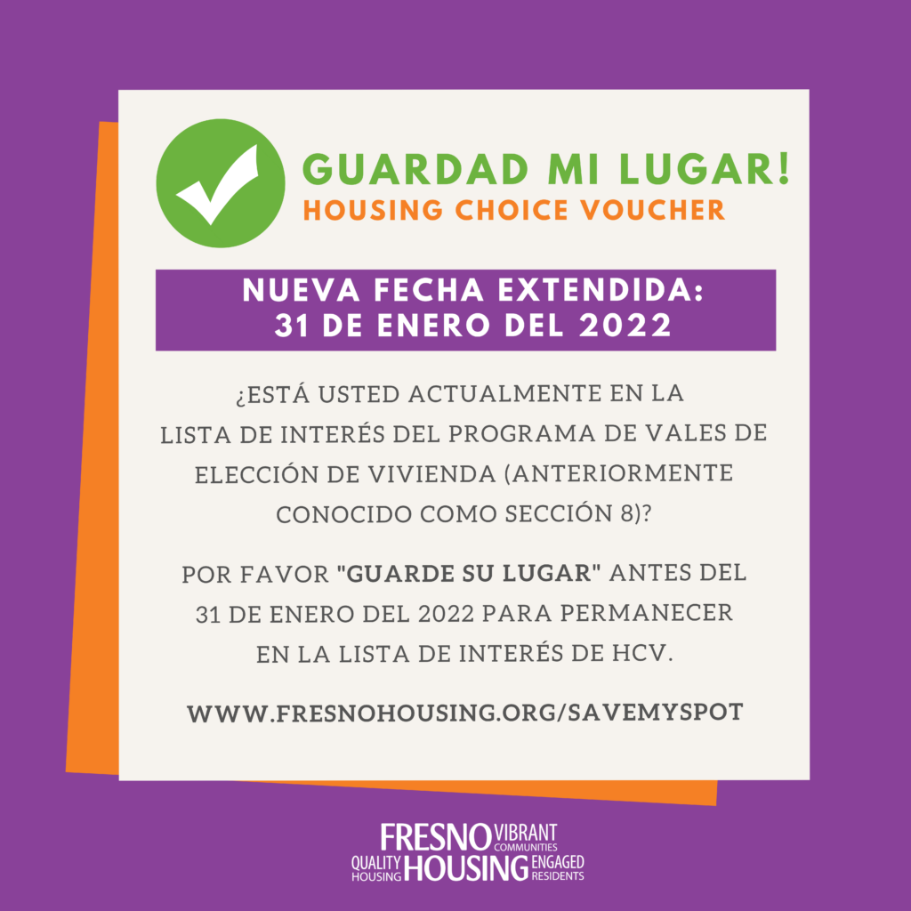 NEW EXTENDED DEADLINE! If you are currently on the interest list for the Housing Choice Voucher program (formerly known as Section 8), please “Save My Spot” by January 31, 2022